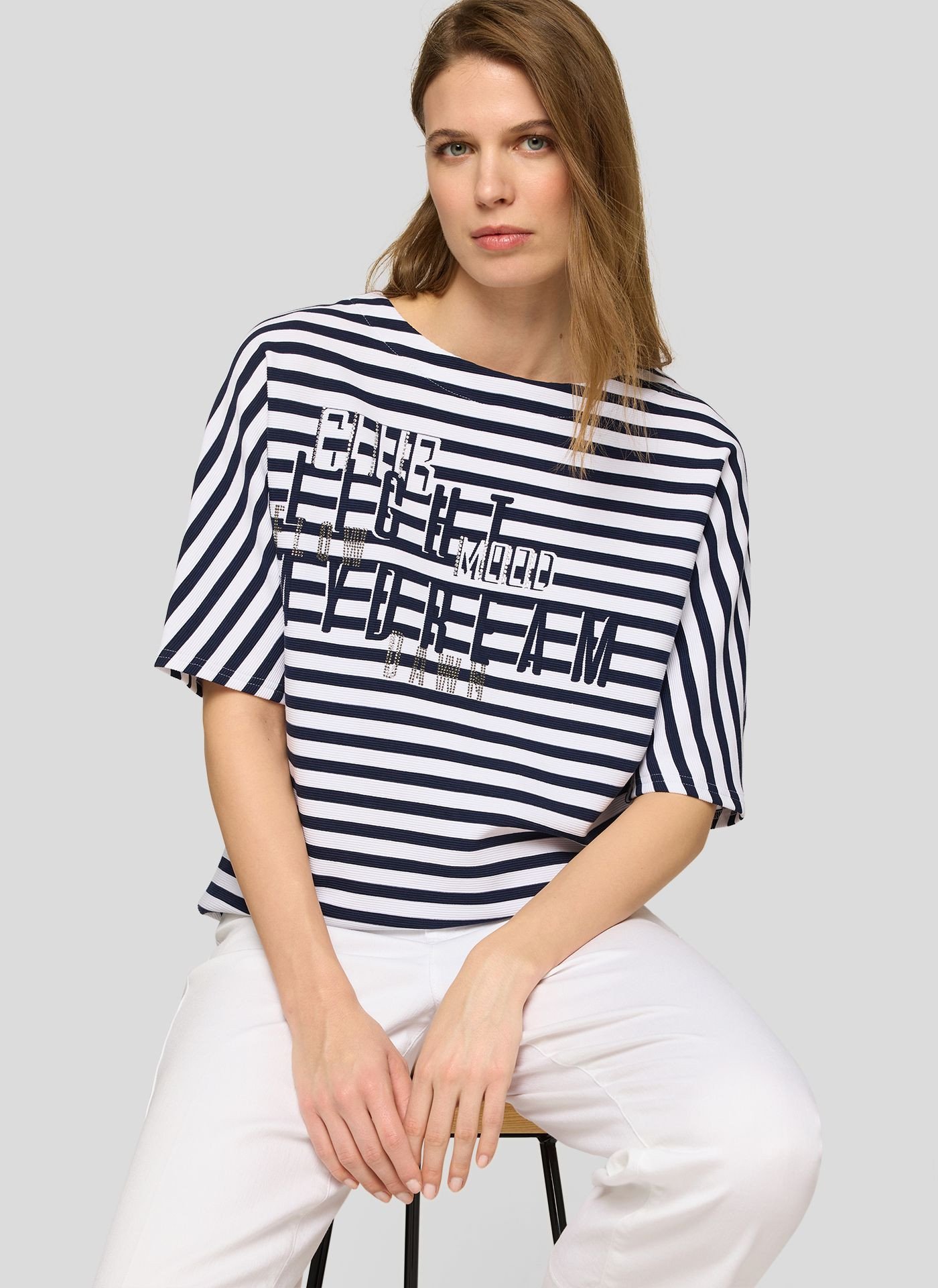 Streifenshirt mit Strassdetail und Halbarm